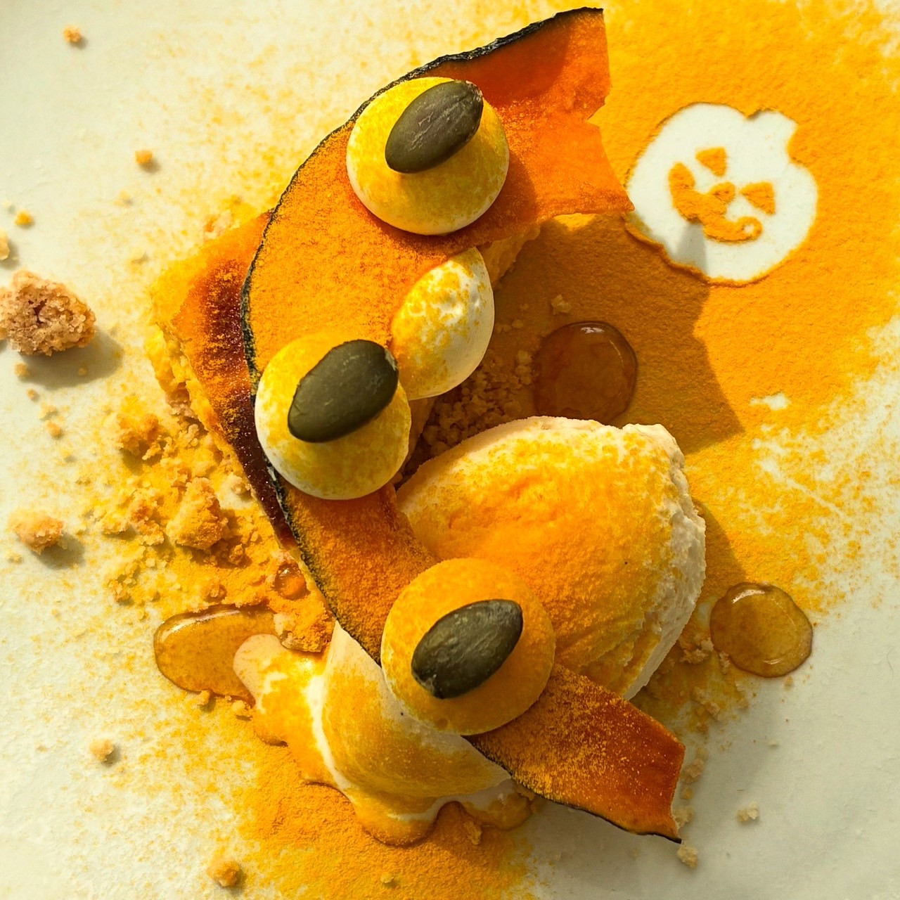 かぼちゃのチーズケーキをメインに、ハロウィン仕様にお作りしました🎃